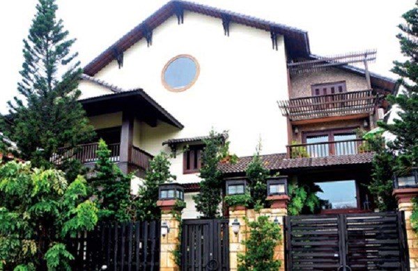 Mẫu biệt thự nổi bật với phần mái cầu kỳ và hệ thống cửa hiện đại. Ảnh: Phongthuyhoangtra.